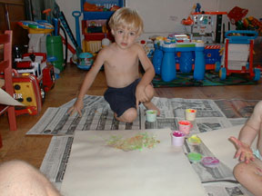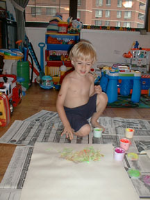 Having fun with paint. I think we got more on ourselves than on the paper.