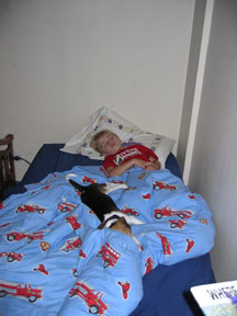 Hunter sleeping with his new dog